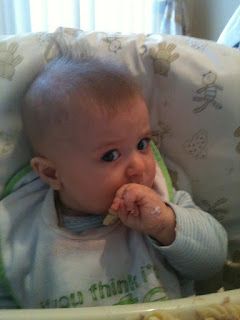 First taste of pasta this lunchtime. I gave JC fusilli pasta with cream cheese and tuna. He loved it! In fact (other than chicken) I would say its the most interested he has been in feeding himself. He was stretching forward to grab the pasta and was most displeased when he had sucked all the tuna off it. He hasn't been too well today as he has a cold and neither am I as I have injured my back (probably from carrying his 18lb 10oz of loveliness around!).